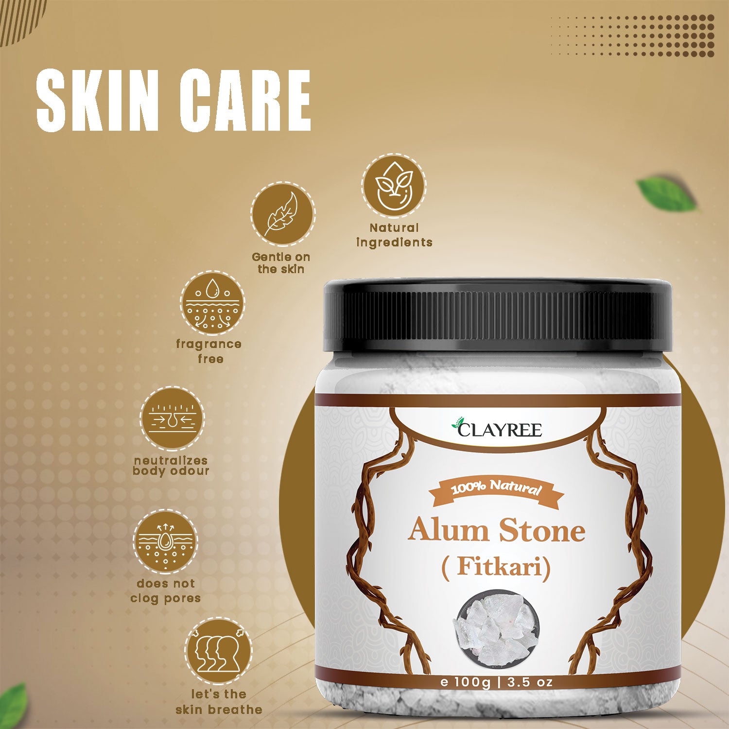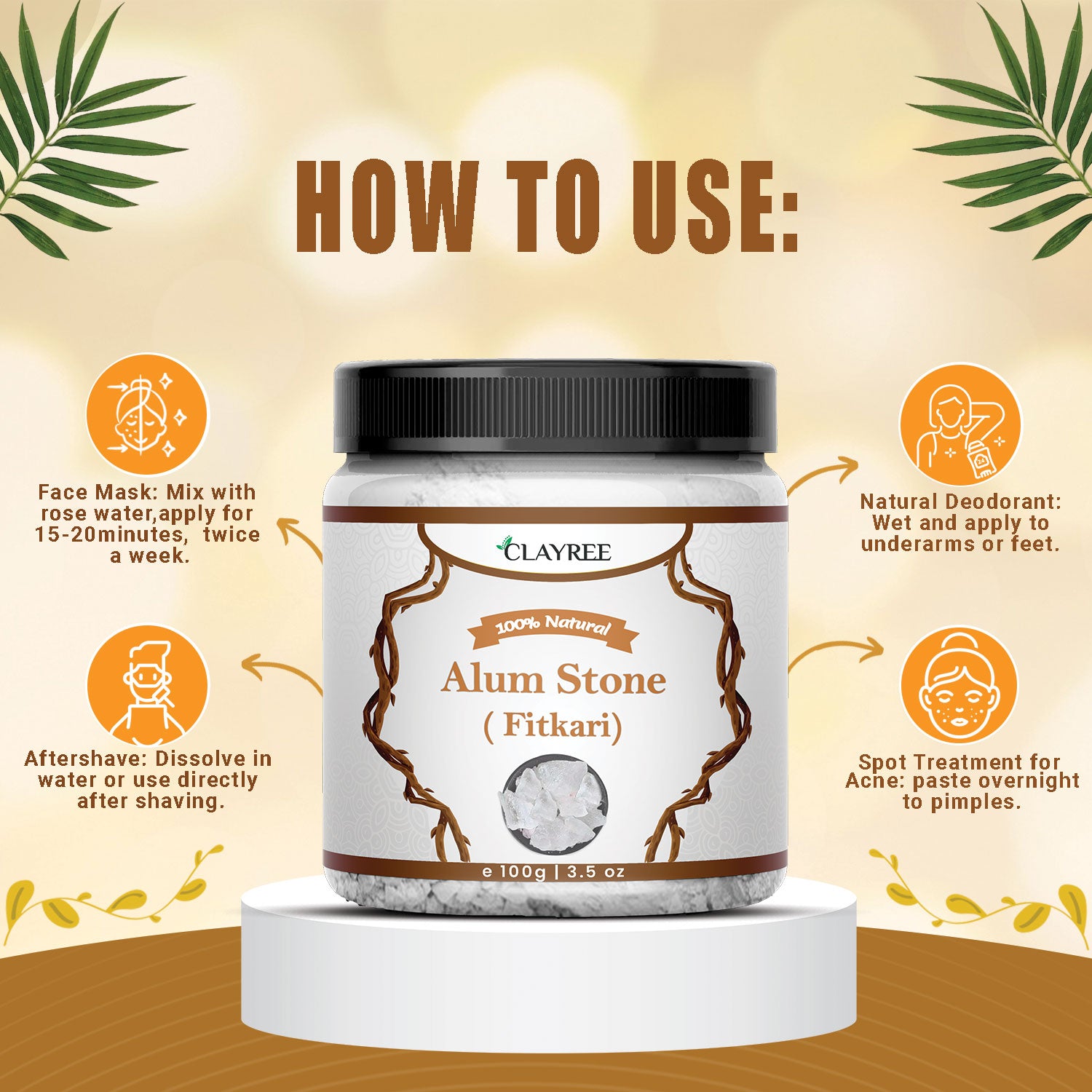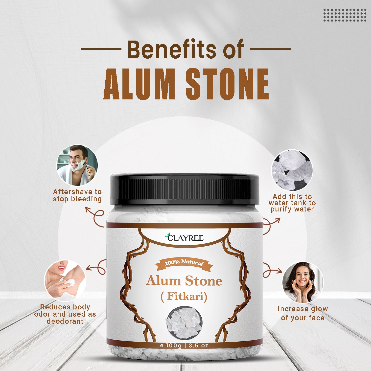 Alum is a natural mineral that has powerful astringent and antibacterial properties. Commonly used as an aftershave, it soothes wounds, tightens pores and reduces acne. It also acts as a natural deodorant, keeping body odor at bay without any chemicals. It is perfect for skin care and personal hygiene.